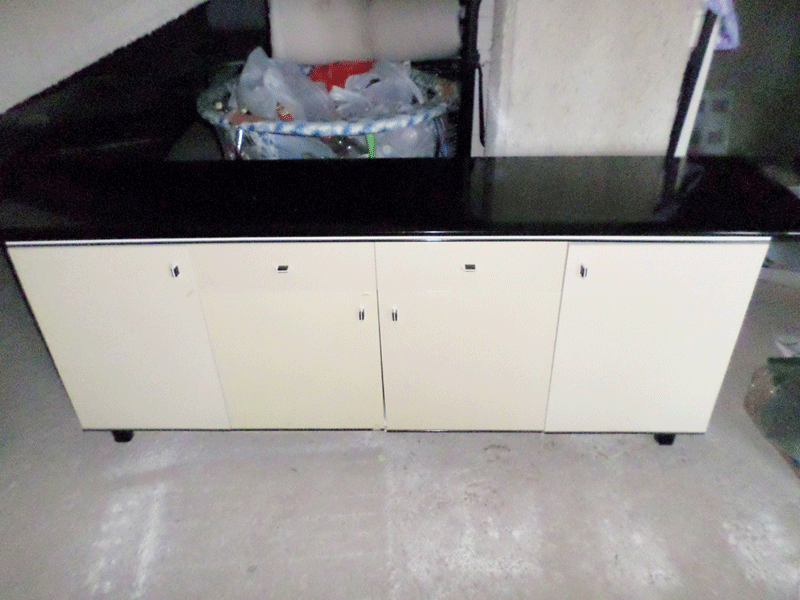 Contromobile laccato bianco con tetto in marmo nero;