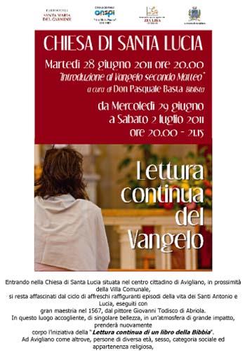 LETTURA CONTINUA DEL VANGELO SECONDO MATTEO: CHIESA DI SANTA LUCIA: 28 GIUGNO - 2 LUGLIO 2011 |