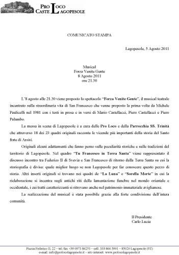 FORZA VENITE GENTE - MUSICAL LAGOPESOLE