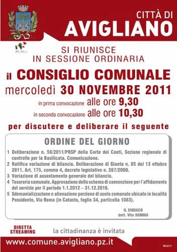 CONSIGLIO COMUNALE AVIGLIANO IN SEDUTA ORDINARIA