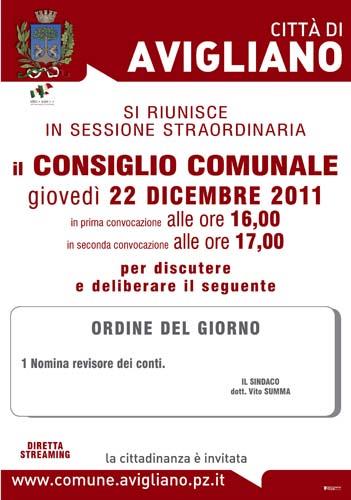 CONSIGLIO COMUNALE AVIGLIANO IN SEDUTA ORDINARIA