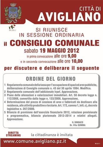 CONSIGLIO COMUNALE AVIGLIANO IN SEDUTA ORDINARIA