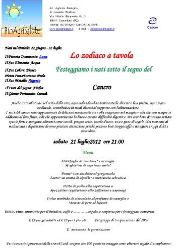 BIOAGRISALUTE CANCELLARA ORGANIZZA: LO ZODIACO A TAVOLA: I NATI SOOT IL SEGNO DEL CANCRO |