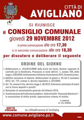 CONSIGLIO COMUNALE AVIGLIANO IN SEDUTA ORDINARIA
