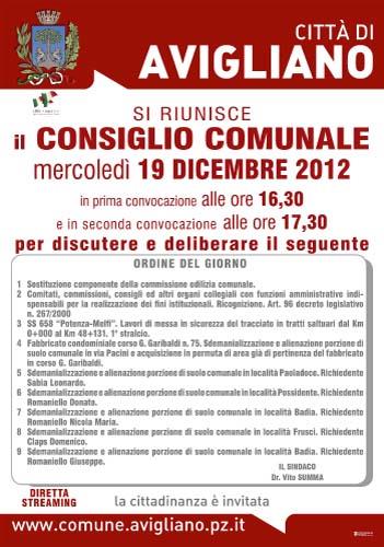 CONSIGLIO COMUNALE AVIGLIANO IN SEDUTA ORDINARIA