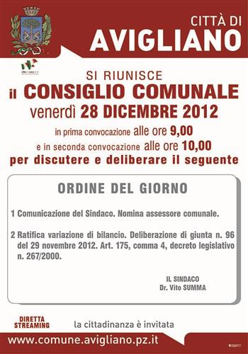 CONSIGLIO COMUNALE AVIGLIANO IN SEDUTA ORDINARIA