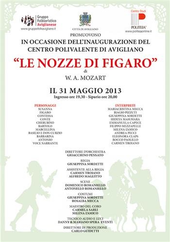 "LE NOZZE DI FIGARO" IN OCCASIONE DELL'INAUGURAZIONE CENTRO POLIVALENTE DI AVIGLIANO |