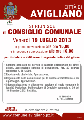 CONSIGLIO COMUNALE AVIGLIANO IN SEDUTA ORDINARIA