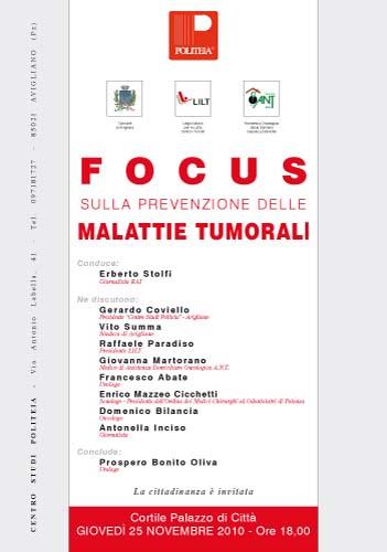 POLITEIA - CENTRO STUDI PRESENTA FOCUS SULLA PREVENZIONE DELLE MALATTIE TUMORALI |