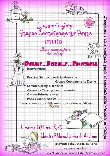 ASSOCIAZIONE GRUPPO COORDINAMENTO DONNE PRESENTA IL LIBRO DONNE...PAROLE...EMOZIONI |