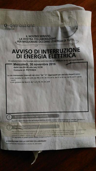 BLOCCO DELLA FORNITURA DI ENERGIA ELETTRICA IN DUE CONTRADE DI POTENZA: QUALI I MOTIVI? |