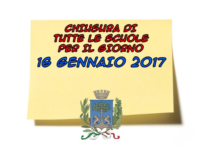 | Considerato il peggioramento delle condizioni meteorologiche e l’allerta meteo prevista per le prossime ore, il Sindaco ha emesso l’ordinanza di sospensione straordinaria e temporanea delle attività didattiche, nella giornata di domani, lunedì 16 gennaio 2017, in tutte le scuole di ogni ordine e grado del Comune di Avigliano. |