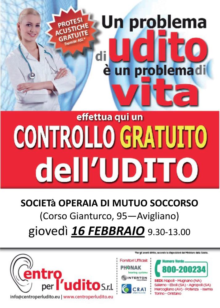 VISITE AUDIOLOGICHE GRATUITE PRESSO I LOCALI DELLA SOMS DI AVIGLIANO |