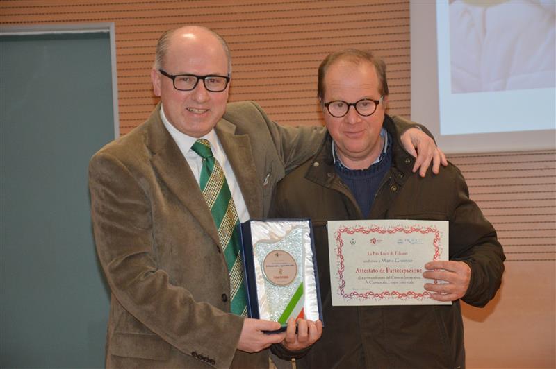 Il concorso era aperto a tutti e le opere fotografiche dovevano essere immagini della manifestazione “Carnevalando 2017” che si è svolta a Filiano il martedì grasso. I partecipanti dovevano raccontare, attraverso immagini, un paese invaso da colori, festa, divertimento e trasformazioni. La foto premiata dalla Pro Loco Filiano è quella della giovane Maria Gruosso che è risultata la più apprezzata dagli utenti di facebook e diventerà la locandina del concorso della prossima edizione. Essendo Maria impossibilitata a partecipare alla premiazione, la targa premio è stata consegnata al padre Mimmo (il “fotografo” del paese) da Vito Sabia della Pro Loco di Filiano, il quale ha ringraziato tutti i partecipanti al concorso fotografico «Per la capacità di trasmettere, attraverso le loro foto, la partecipazione entusiasta a un momento tipico del carnevale.» Attestato di merito è stato consegnato a Vitantonio Pace e Emanuele Pio Santarsiero. |