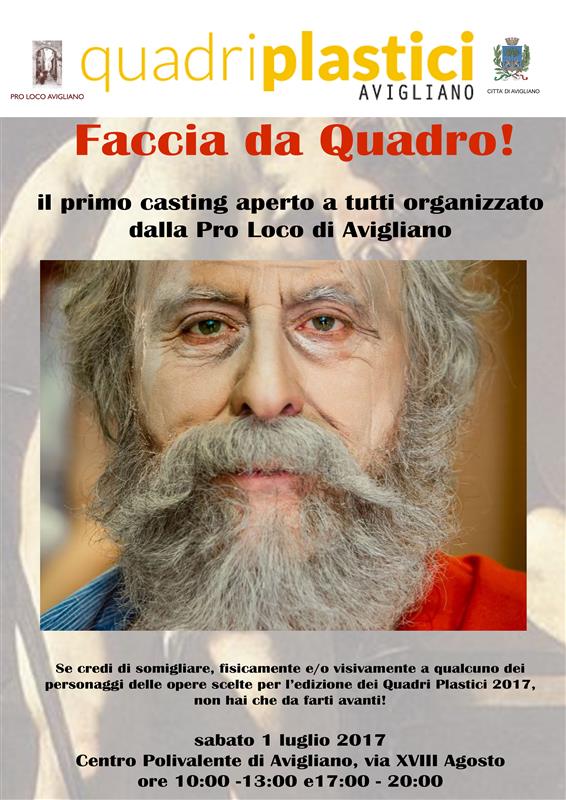 Sabato 1 luglio presso il Centro Polivalente di Avigliano in via XVIII agosto, ore 10-13 e 17-20 si terranno le selezioni aperte a tutti per l’individuazione dei personaggi dell’evento agostano. La prossima edizione dei Quadri Plastici, prevista per domenica 6 agosto 2017, avrà come tema il martirio sviluppato attraverso la rappresentazione di tre opere del Caravaggio (Decollazione di San Giovanni Battista, Martirio di San Matteo e Crocifissione di Sant’Andrea). Giusto il tempo di posare le valige- dichiara la presidente della Pro Loco Carmen Salvatore- ci siamo messi nuovamente al lavoro per l’edizione del 2017. Quest’anno, per la prima volta, abbiamo voluto organizzare il casting pubblico per la scelta dei personaggi durante un’intera giornata in cui coloro che volessero cimentarsi, verranno supervisionati e selezionati dai tre direttori artistici. Il fermento in città è tanto così come la voglia di provare almeno una volta l’emozione di vivere in prima persona l’esperienza dei Quadri Plastici. Di qui la decisione di dedicare uno spazio a sé a questa operazione molto delicata che si configura come un vero e proprio evento che apre ufficialmente i preparativi per l’edizione del 2017. La necessità di rimettersi velocemente al lavoro, tuttavia, non esclude di poter rivolgere ancora un pensiero all’evento di La Spezia appena conclusosi. E’ stata un’altra esperienza indimenticabile che si va ad aggiungere a pieno titolo al prestigioso palmares dei Quadri Plastici e della Pro Loco aviglianese. Amore, passione, sacrificio e un gran lavoro di squadra sono gli ingredienti di questo straordinario successo. E’ mio dovere pertanto ringraziare tutti coloro che hanno contribuito alla realizzazione dell’evento spezzino: il gruppo Aviliart, i figuranti (Donatella Rosa, Carlotta Lacerenza, Paola Samela e Giambattista Guglielmi), Marcello Samela per aver dipinto il fondale, Pietro Santarsiero per la scelta delle musiche, Renato Zaccagnino per lo studio e la realizzazione dei supporti ai figuranti e la sponsorizzazione delle magliette in qualità di presidente della CNA di Potenza, Raffaele Perillo per le luci, l’Amministrazione Comunale di Avigliano. Infine rivolgo un plauso particolare ai miei consiglieri della Proloco di Avigliano per l’impegno costantemente profuso prima e durante l’evento. La Pro Loco di Avigliano conferma il suo ruolo centrale per la promozione e la crescita dei Quadri Plastici e questo ennesimo successo rappresenta un ottimo avvio dei festeggiamenti per il ventennale di un’associazione che ha ancora tanti traguardi dinanzi a sé. Per maggiori informazioni sul casting e per visitare la galleria delle immagini di La Spezia consultare il sito www.quadriplasticiavigliano.it. |