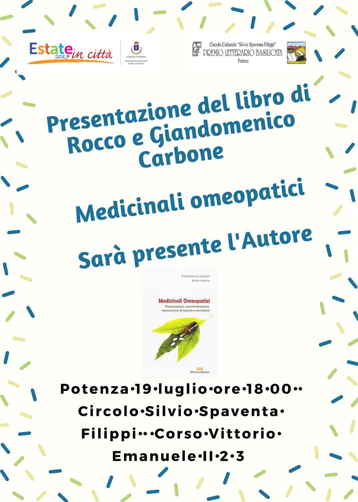 PRESENTAZIONE DEL LIBRO DI GIANDOMENICO E ROCCO CARBONE DAL TITOLO “MEDICINALI OMEOPATICI” |