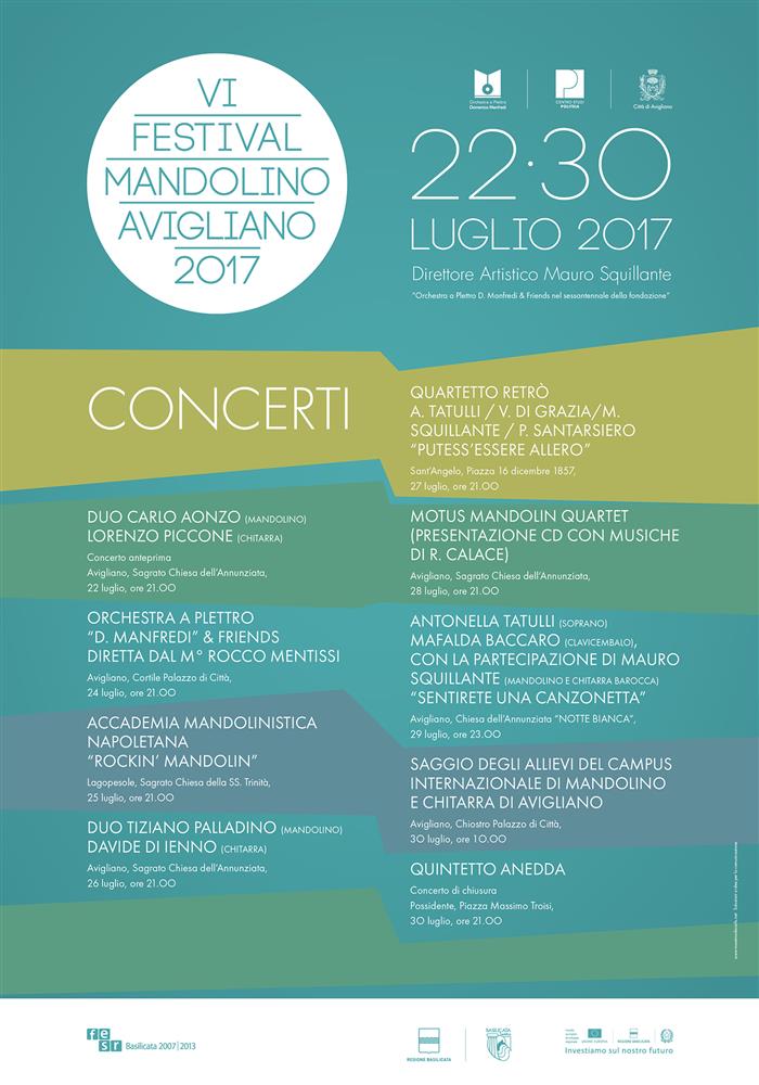 VI FESTIVAL DEL MANDOLINO AVIGLIANO 2017 - CONCERTI DAL 22 AL 30 LUGLIO |
