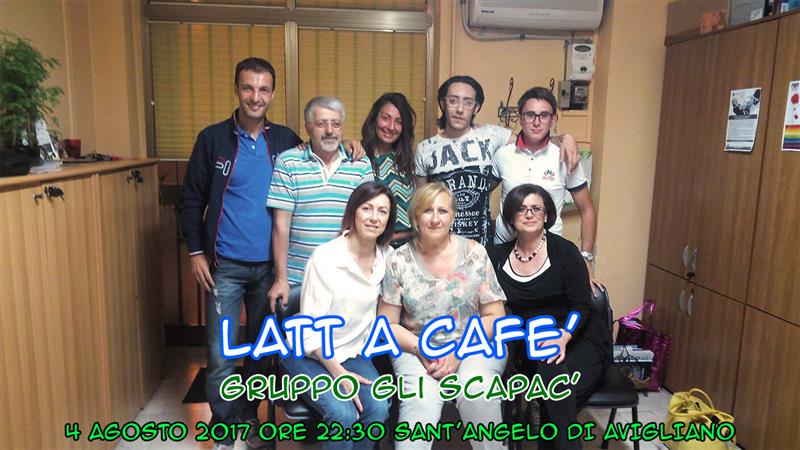 | Il 4 Agosto 2017 alle 22 e 30 in piazza XVI dicembre a Sant'Angelo di Avigliano il Gruppo teatrale improvvisato "Gli Scapac'" proporrà la sua nuova recita in vernacolo aviglianese dal titolo "Latt a cafè " ...