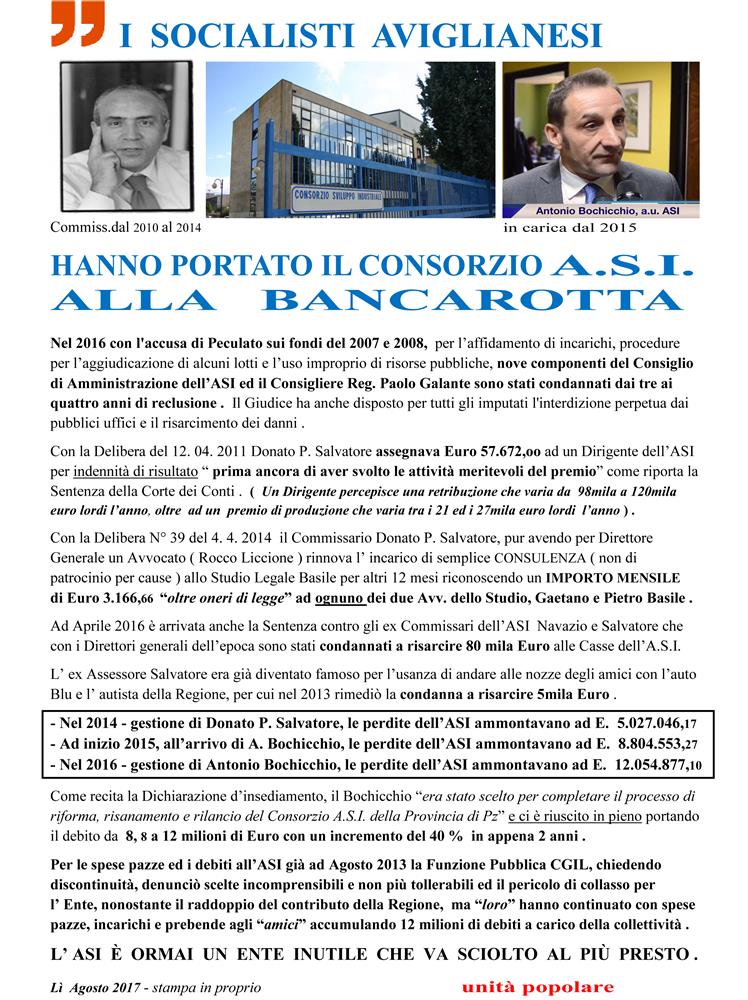 I SOCIALISTI AVIGLIANESI HANNO PORTATO IL CONSORZIO A.S.I. ALLA BANCAROTTA |