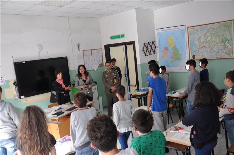 L’incontro svoltosi in un clima di estrema cordialità ed accoglienza, ha delineato uno schema di intese ed accordi che attraverso una fitta rete di iniziative culturali congiunte contribuiranno ad intensificare la già proficua collaborazione esistente tra l’Istituzione Militare ed il territorio lucano. Comune, ha parlato dell’importantissima villa romana di San Giovanni, mostrando al Colonnello Di Biasio alcune strutture di interesse culturale e architettonico presenti nel centro storico di Ruoti, crogiuolo di arte e cultura. Tra esse, il Palazzo Ruffo, residenza nobiliare ottocentesca, e la Chiesa Madre che antecedente al 1620, come attestato in alcuni atti notarili, custodisce statue lignee e quadri di pregevole fattura. La visita è proseguita presso l’Istituto scolastico comprensivo comunale “Michele Carlucci” dove, accompagnato dal Sindaco, il Comandante Di Biasio è stato ricevuto dalla vicepreside e dalla responsabile del plesso unitamente a tutto il personale dell’Istituto. Dopo aver incontrato gli alunni della scuola primaria e di primo grado, il Comandante Di Biasio si è intrattenuto con gli allievi delle terze classi illustrando loro i compiti e le attività dell’Esercito. Ha sottolineato altresì l’importanza del percorso scolastico formativo quale indispensabile trampolino di lancio per il futuro dei giovani studenti, esortandoli ad impegnarsi nello studio e a raggiungere sempre nuovi traguardi. Al termine dell’incontro, il Sindaco Scalise e il Comandante Di Biasio hanno invitato alunni e docenti a partecipare all’evento commemorativo sulla Grande Guerra che si svolgerà a Ruoti il 6 novembre prossimo e il 29 novembre, alla presentazione del libro “Un contadino lucano sul monte Tomba” scritto dal dottor Mario Restaino. Il Comandante Di Biasio si è poi complimentato con il Sindaco Anna Maria Scalise per l’organizzazione, l’ospitalità e l’operosità della sua Amministrazione, evidenziando l’importanza dello “spirito di servizio” quale principio imprescindibile per chi assolve il gravoso compito della gestione delle risorse sia in ambito civile che militare. |