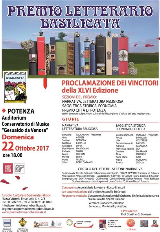 | Nell'ambito della manifestazione circa il "premio Basilicata" che si terrà oggi 22 ottobre 2017 in Potenza...nella sezione studenti verrà premiata una studentessa di Sant'Angelo di Avigliano.