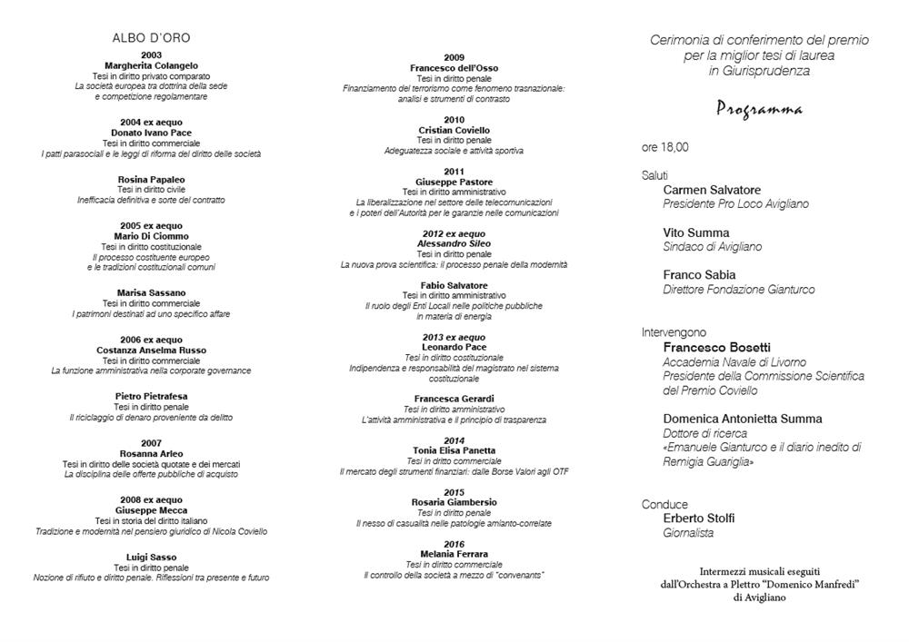 CERIMONIA DI CONFERIMENTO DEL PREMIO COVIELLO EDIZIONE 2017 |