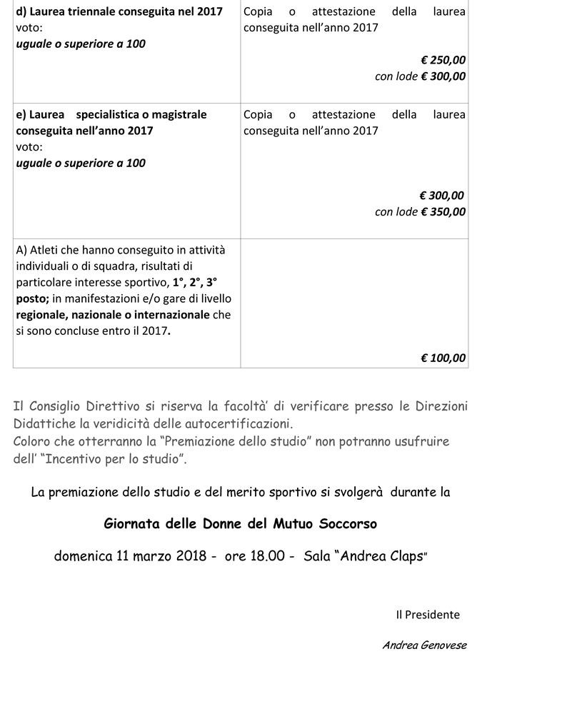 PREMIAZIONE DELLO STUDIO E DEL MERITO SPORTIVO ANNO 2017 |