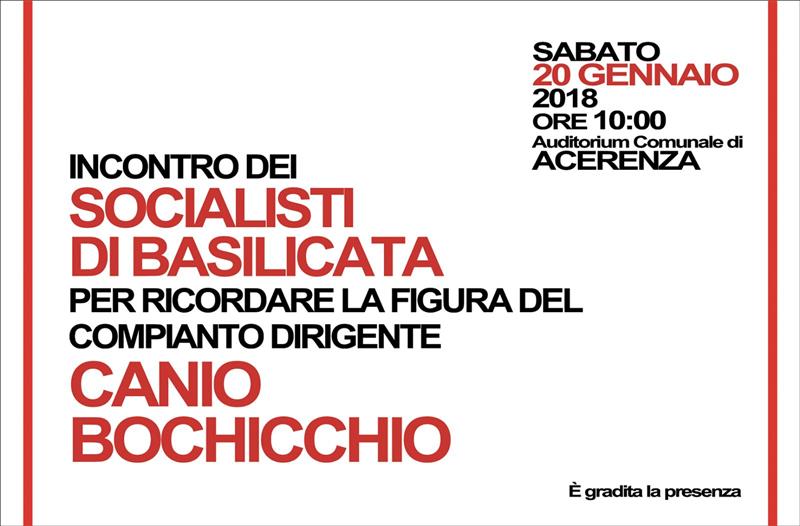 | Lo scorso sabato 20 gennaio, presso l’Auditorium comunale di Acerenza, i Socialisti di Basilicata hanno organizzato un incontro per ricordare la figura del compagno e amico Canio Bochicchio nel secondo anniversario della sua morte. In un’atmosfera di profonda emozione, durante la quale non sono mancati momenti di sincera commozione, dirigenti di partito, esponenti delle istituzioni locali e regionali, semplici iscritti al PSI, amici e familiari hanno condiviso ricordi e delineato con aneddoti, personali o di vita politica, la figura di Canio. Gli interventi sono stati numerosi e tutti hanno puntato l’accento, quale comune denominatore, sua una caratteristica fondamentale della personalità del compianto amico: la passione politica e l’innata umanità.