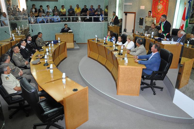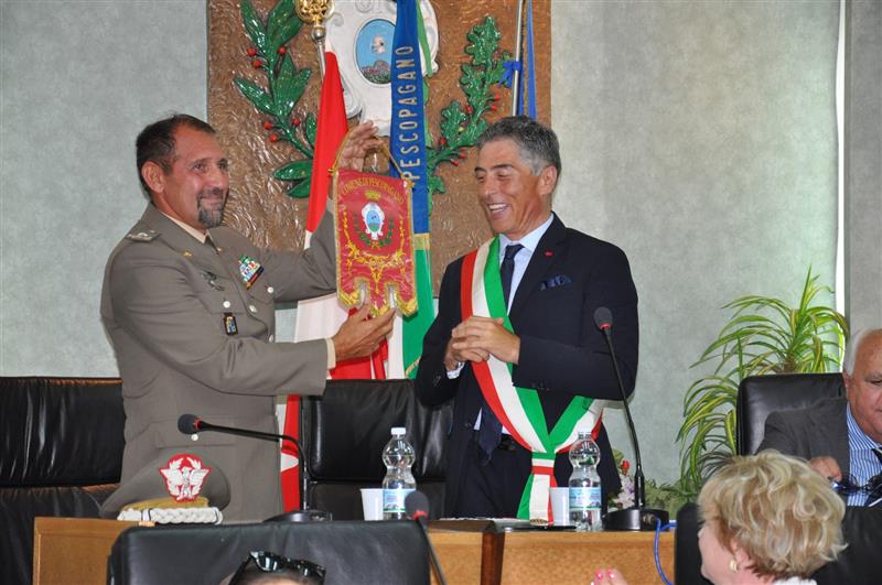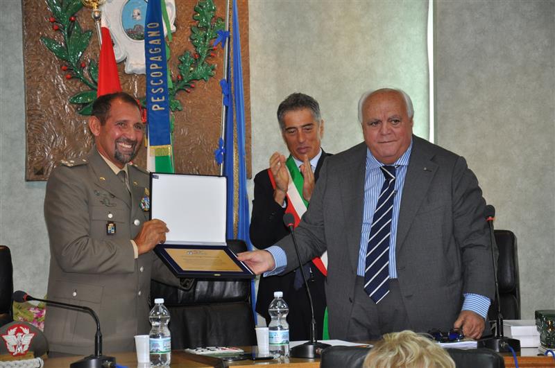 | Potenza 14 settembre. Si è svolto nei giorni scorsi, a Pescopagano (PZ), l’evento conclusivo delle Ofantiadi,.gare sportive tra i Comuni dell’area del fiume Ofanto. In tale contesto, nella Sala Consiliare della cittadina, alla presenza del Consiglio Comunale, di numerosi Sindaci dei Comuni limitrofi, di autorità civili e militari e della comunità pescopaganese, si è tenuta una cerimonia ufficiale per la consegna di una medaglia e di una targa al Generale di Brigata Sergio Santamaria, Comandante del Comando Supporto Logistico dell’Esercito nonché responsabile e coordinatore delle operazioni di soccorso alle popolazioni civili dell’Aquila e di Amatrice, colpite dal sisma del 2016.