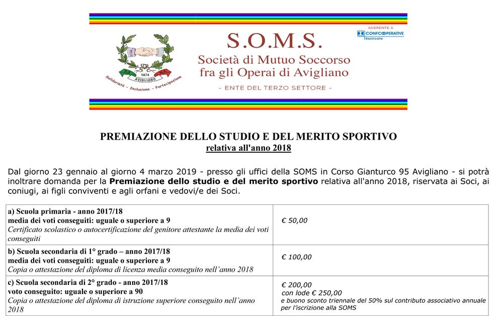 PREMIAZIONE DELLO STUDIO E DEL MERITO SPORTIVO ANNO 2018 |