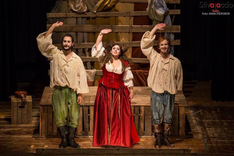 In scena la compagnia Stivalaccio Teatro, formata da un trio di giovani e talentuosi attori, Marco Zoppello, che cura anche l’adattamento e la regia, Anna Franceschi e Michele Mari, i quali prendendo spunto dalla tragedia shakespeariana riescono a dare vita ad un’ esilarante tragicommedia nella quale a farla da padrone sono la recitazione e l’improvvisazione. La trama - Anno 1574. Mentre Venezia è in subbuglio per l’arrivo in città di Enrico III di Valois, futuro re di Francia, il Doge incarica Giulio Pasquati e Girolamo Salimbeni, coppia di ciarlatani saltimbanco, a dare spettacolo in onore del principe mettendo in scena la più grande storia d’amore mai scritta, Romeo e Giulietta. Due ore di tempo per andare in scena, provare lo spettacolo e soprattutto per trovare la Giulietta giusta, casta e pura, da far ammirare al principe Enrico. La scelta ricadrà sulla procace e sboccata Veronica Franco, poetessa e cortigiana della Repubblica, disposta a cimentarsi nell’improbabile parte dell’illibata giovinetta. Lo spettatore assisterà dunque ad una “prova aperta”, come nella migliore tradizione della Commedia dell’Arte italiana, della celeberrima storia del Bardo che prenderà forma e si deformerà in un mescolarsi vorticoso di trame, dialetti, canti, improvvisazioni, suoni, duelli e pantomime. Il tutto, scorrazzando impunemente nello spazio e nel tempo, fra testi shakespeariani non ancora scritti (nel 1574 il Bardo aveva 10 anni), versi di De André, citazioni di Rocky, Titanic e persino cooking-show. Prossimo appuntamento con “Le Valli del Teatro” sabato 23 Febbraio con “Pane, latte e lacrime, ambientato nel quartiere di San Lorenzo a Roma nei giorni precedenti il bombardamento del 19 luglio 1943. |