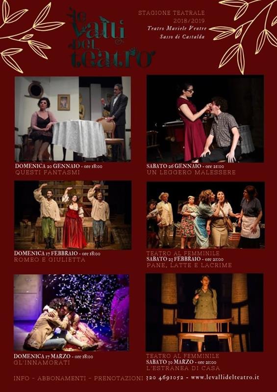 | SASSO DI CASTALDA - Domenica 17 febbraio, ore 18.00, al Teatro Mariele Ventre la stagione 2019 de “Le Valli del Teatro” prosegue con l’irresistibile “Romeo e Giulietta. L’amore è saltimbanco”, spettacolo selezionato nel 2017 per rappresentare l’Italia al Festival Internazionale Commedia dell’Arte di Nizza.