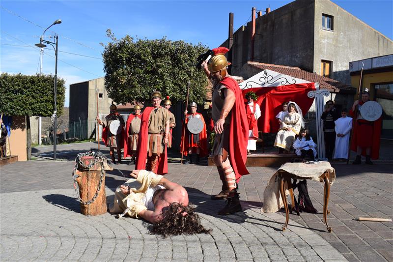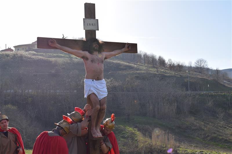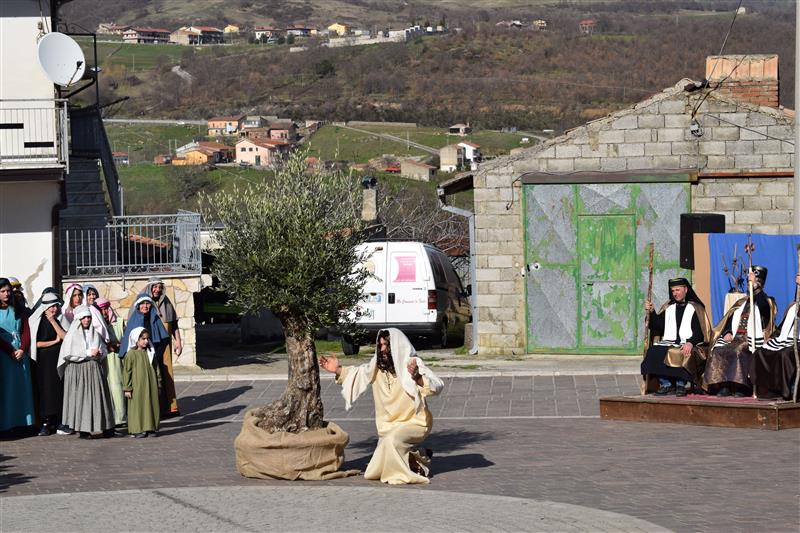 Una proposta molto audace, questa, che si è concretizzata già lo scorso anno in una magnifica esperienza, anche grazie all’entusiasmo galvanizzato dalla partecipazione dell’intera comunità, che spinge il Gruppo Eventi della Parrocchia Santa Maria del Carmelo a crescere sempre di più, per realizzare una rappresentazione che non sia solamente una rappresentazione di un fatto storico ma un percorso di riscoperta personale del senso più autentico della Pasqua. Il coinvolgimento e la partecipazione di tutta la comunità, abitata da poco meno di mille persone, è sicuramente il risultato che più fa sperare e che spinge il gruppo a continuare a riunirsi per presentare numerose novità. La manifestazione si svilupperà intorno alla rappresentazione della Passione di Gesù, secondo la lettura del Testo sacro. La narrazione, calata nel contesto della piccola comunità lucana, aiuterà a ripercorrere le ultime ore di vita di Gesù. Questo il programma della serata: ore 18.00 Rappresentazione della Condanna a Morte del Cristo: in Piazza XVI dicembre saranno ripercorsi i momenti che hanno portato alla crocifissione di Gesù. Successivamente il corteo attraverserà il centro abitato fino a raggiungere il “Golgota” situato, simbolicamente, in contrada Gianturco, luogo di esecuzione della pena della Crocifissione. Lungo il percorso, ad attendere il corpo flagellato ci saranno, Maria, madre di Gesù, Simone di Cirene, la Veronica, pronta a raggiungere Gesù e tergere il suo volto con un candido lino, e alcune pie donne che lo compassionavano e piangevano per lui. Carico dei nostri peccati, umiliato e sopraffatto dal peso delle tante iniquità, Gesù affronterà anche il grande peso della croce, cadendo al suolo come un agnello innocente. Grazie all'impegno dell’intera comunità sarà quindi possibile rivivere il Triduo Pasquale dal suo prologo nell’ultima cena e nel tradimento di Giuda sino alla crocifissione. La rappresentazione sarà interamente recitata in modo da far rivivere la vicenda umana e religiosa grazie all'interpretazione degli attori (gli stessi abitanti della comunità) che sono riusciti, già lo scorso anno, a immedesimarsi totalmente nella propria parte, grazie anche a costumi e scenografie realizzate e curate dal gruppo stesso. |