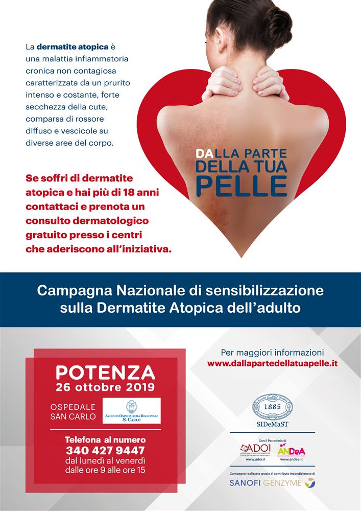 | La Campagna nazionale di sensibilizzazione sulla dermatite atopica dell’adulto, “Dalla parte della tua pelle” che prevede visite dermatologiche gratuite su prenotazione per chi soffre di questa patologia, fa tappa a Potenza Sabato 26 ottobre.