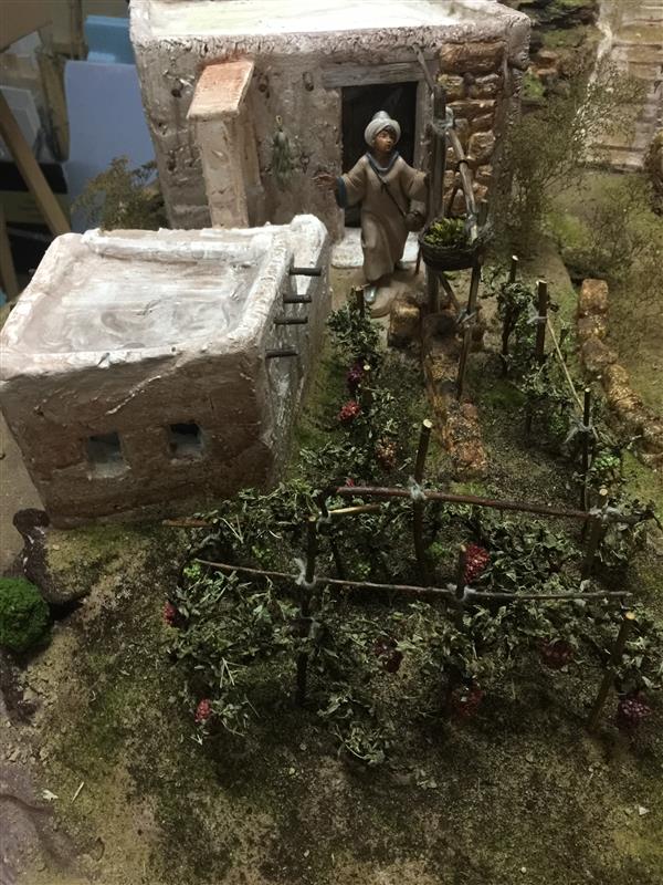 A Dicembre 2016, in occasione della Solennità del Natale, fu presentata un’anteprima di quest’opera, dell’estensione di soli 10 metri quadri, mentre lo scorso Natale 2018, l’iniziale progetto di questo Presepe è stato ampliato ed ha raggiunto una superficie di venti metri quadrati (2 mt. in profondità x 10 mt. in lunghezza). Per il quarto anno consecutivo l’opera sarà allestita su un palcoscenico con quinte, completo di una dettagliata e particolare scenografia, con l’ultimo ampliamento che porterà la dimensione di questo Presepe a circa 25 mq. Novità assoluta, lo scorcio di una “vigna”, per la cui realizzazione, i due autori hanno utilizzato i raspi dell’uva per simulare le viti, salvia triturata per le foglie e semi di quinoa per gli acini dei grappoli. Per l’originalità del suo stile, è una delle poche esposizioni di questo genere in Basilicata. Il “Presepe in Stile Orientale” si distingue dall’altra scuola denominata “Presepe Popolare” e per la realizzazione i due maestri presepisti Gallicchio e Recine hanno seguito i dettami di alcuni passi del Vangelo, e le notizie giunte fino ai nostri tempi, tratte dalla storia della vita in Palestina ai tempi di Gesù. Attenendosi il più possibile a queste informazioni, i due artisti hanno dato vita a questa realizzazione in un’ambientazione tipica dei luoghi dove è avvenuta la nascita di Gesù. Si potranno ammirare: una porzione di un tipico villaggio palestinese con case bianche di forma cubica, dove la vita scorre lenta tra i banchi di un mercato, mentre davanti ad un tempio alcuni soldati romani sono intenti a controllare, che tutto sia sotto la loro supervisione. In realtà, sfugge ai loro occhi l’importante “Evento” della nascita del “Salvatore”, in una grotta lontana, visitato solo da umili pastori che bivaccano nel frattempo sotto le loro tipiche tende arabe, in prossimità di un oasi. “Un Presepe da leggere…” con questa frase si può sintetizzare la sensazione che si proverà nell’osservare le varie scene che si susseguono lungo i 13 metri di esposizione, visitabile per tutto il periodo delle Festività Natalizie dal 15 dicembre 2019. Le immagini del “Presepe in Stile Orientale di Rionero” sono state annoverate nel sito dell’Associazione Italiana Amici del Presepio (A.I.A.P.), organo ufficiale per gli appassionati di questa “Nobile Arte”. |