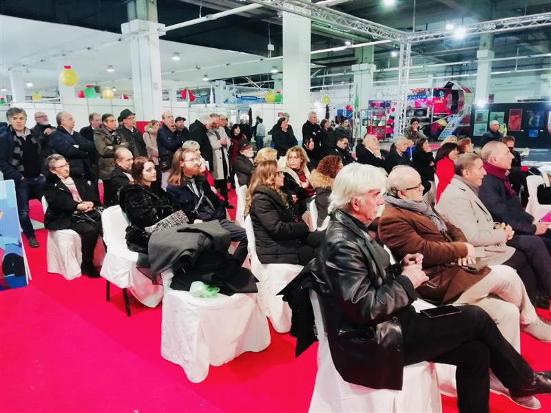 Il nero della moquette e dei pannelli che ricoprono l’immenso spazio, non sono mai stati tanto colmi del senso del bello. 53 artisti e oltre 500 opere che hanno accolto una sfida. E la sfida proposta dalla curatrice della grande mostra, lo storico dell’arte Merisabell Calitri, e della grande anima di OltrArte, l’avvocato Aurelio Pace, pare essere stata vinta al meglio. Ancora siamo nel pieno dell’esposizione che permetterà uno sguardo verticale e non solo orizzontale verso dipinti, sculture, fotografie, in una cornice anticonvenzionale ed eccentrica, che si è rivelata essere, come nelle previsioni, una grande conquista. Sul grande palco centrale continue presentazioni di libri si stanno susseguendo. Alcuni dei titoli dei libri presentati: “Protoagonia della rinascita” di Anna Teresa Laurita, “Appartenenza e fedeltà. Leonardo da Vinci come gli Atellani “ di Aurelio Pace, “Lei era nessuno” di Letizia Vicidomini, “Il tempo di un soffio” di Donato Di Capua, “Nella bottega di Caravaggio” di Raffaele Messina. Per sabato 21 sono previste invece le presentazioni dei volumi di Luciana Pace, “Leinad. La mia tempesta”, la collana di Sergio Ragone “I luoghi ideali” e il volume di Walter De Stradis, “Nella testa di Antonio Infantino”. Per domenica 22 dicembre invece ci attendono “ Cercere e rieducazione” di Donato Antonio Telesca, “Malanni di stagione” di Oreste Lo Pomo e “Eppure qualcuno mi doveva ascoltare “ di Aurelio Pace. Il tutto in una cornice che è tutto tranne che un contenitore, ma l’anima stessa del senso del bello oltre il tempo. |