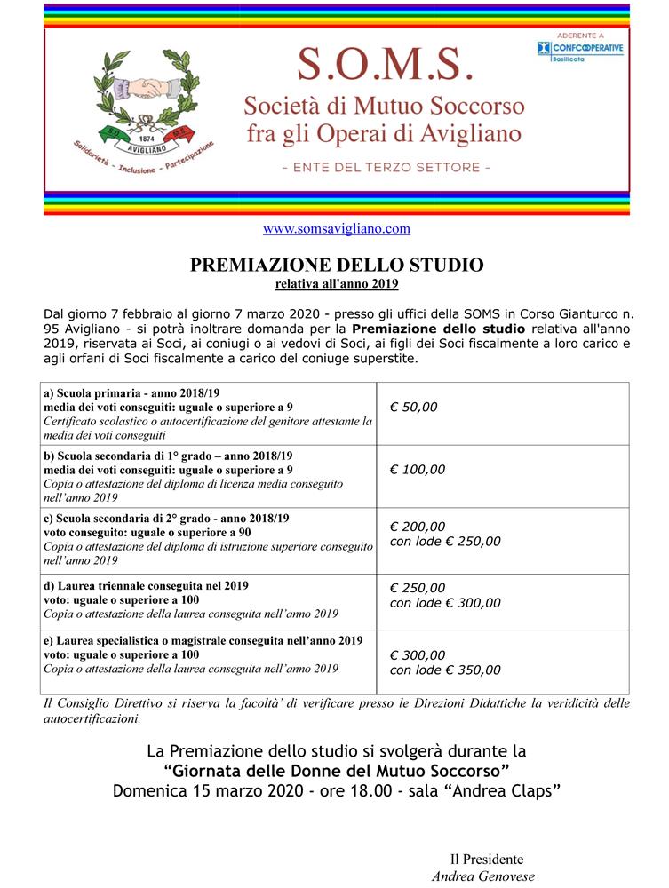 PREMIAZIONE NELLO STUDIO ANNO 2019 |
