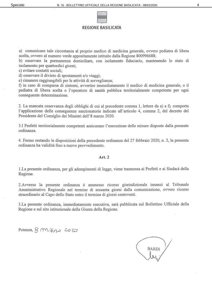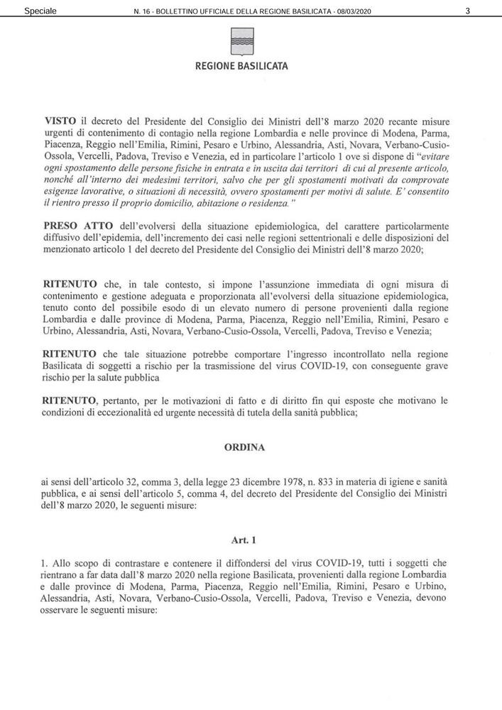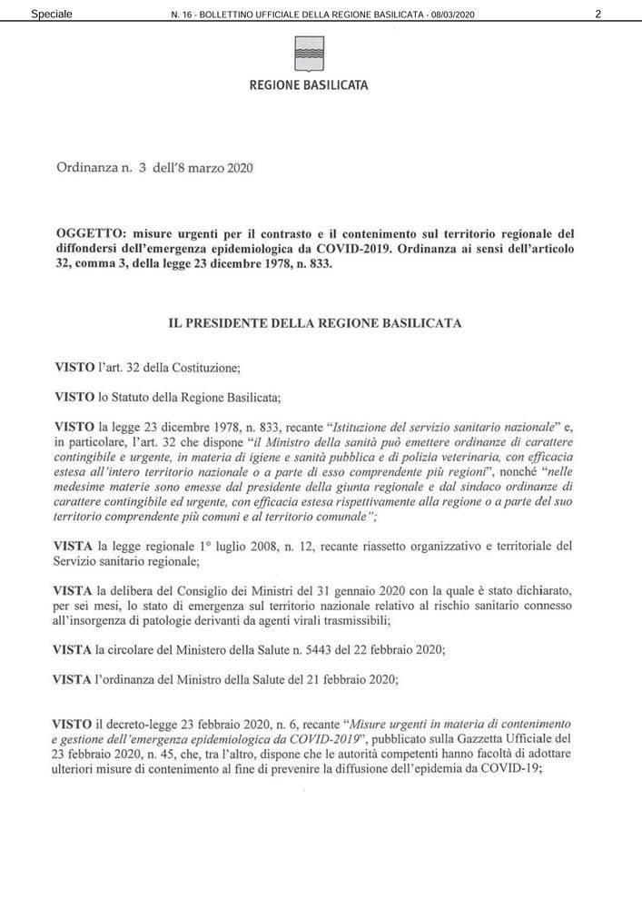 epidemiologica da COVID-2019. Ordinanza ai sensi dell'articolo 32, comma 3, della legge 23 dicembre |