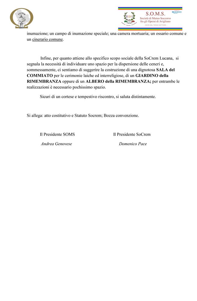 RICHIESTA NULLA OSTA ALLA SUB-CONCESSIONE ALLA SOCREM LUCANA DELLA GESTIONE DI URNE CINERARIE COSTRU |