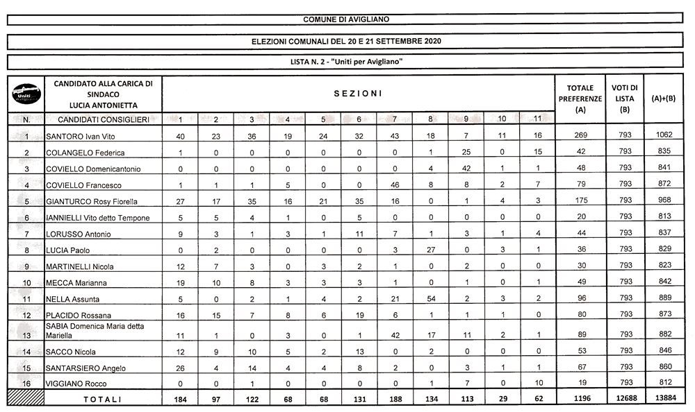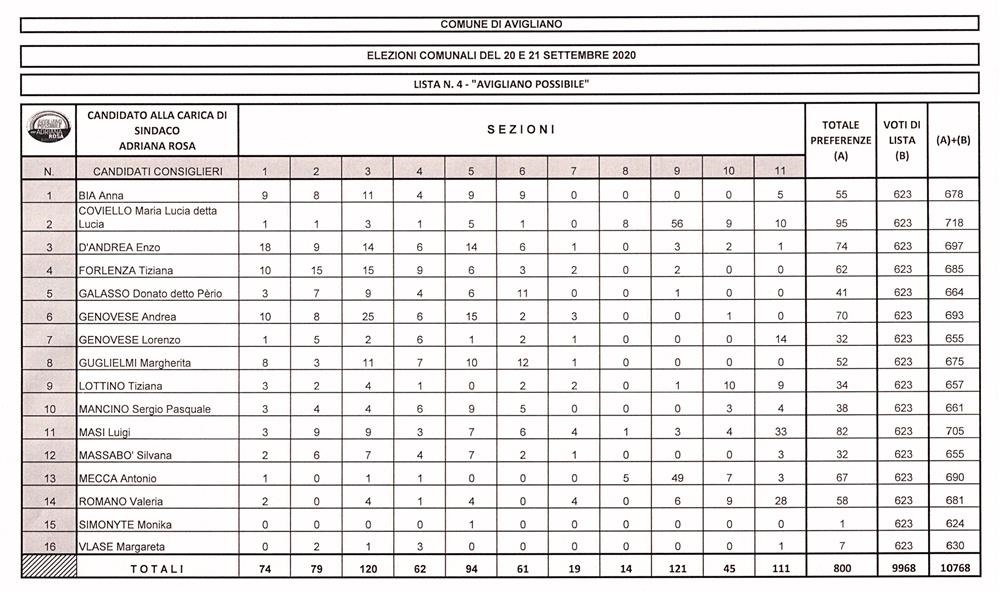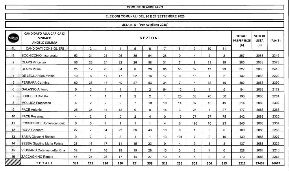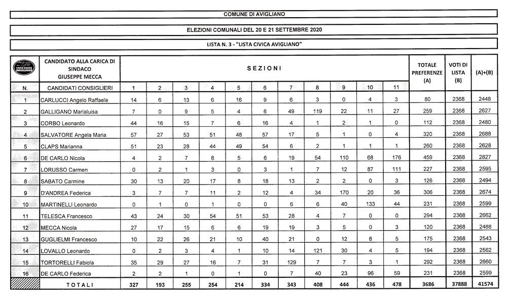ELEZIONI COMUNALI DATI SCRUTINIO DEL 20 E 21 SETTEMBRE 2020 |