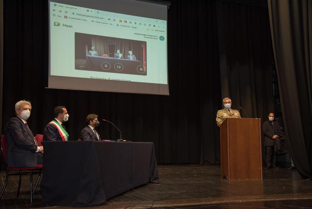 | Potenza, 23/11/2020. Si è svolta oggi nel teatro Stabile di Potenza una cerimonia durante la quale è stata conferita la Cittadinanza Onoraria all’Esercito Italiano per lo straordinario e determinante contributo prestato in favore della popolazione lucana colpita dal sisma del 23 novembre 1980 che provocò migliaia di morti, feriti e sfollati.
