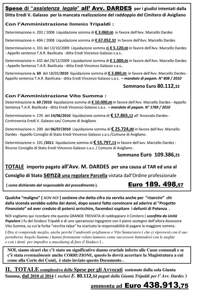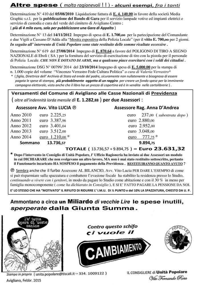 AMMONTANO A CIRCA UN MILIARDO DI VECCHIE LIRE LE SPESE INUTILI SPERPERATE DALLA GIUNTA SUMMA |