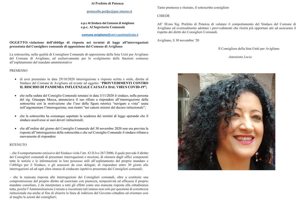 VIOLAZIONE DELL’OBBLIGO DI RISPOSTA NEI TERMINI DI LEGGE ALL’INTERROGAZIONI PRESENTATA DAL CONSIGLIERE COMUNALE DI OPPOSIZIONE DEL COMUNE DI AVIGLIANO |