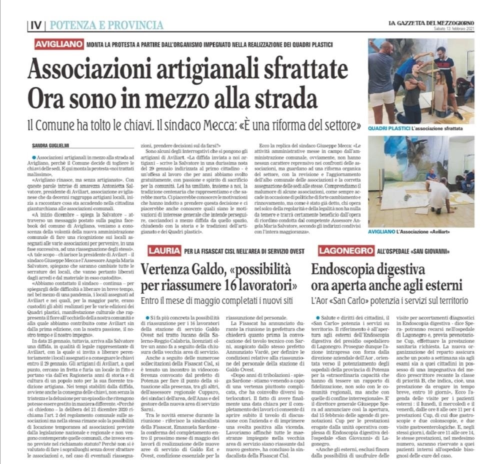 | Associazioni artigianali in mezzo alla strada ad Avigliano, perché il comune decide di togliere le chiavi alle sedi. E qui monta la protesta: «noi trattati malissimo». «Avigliano rinasce, ma senza artigianato».