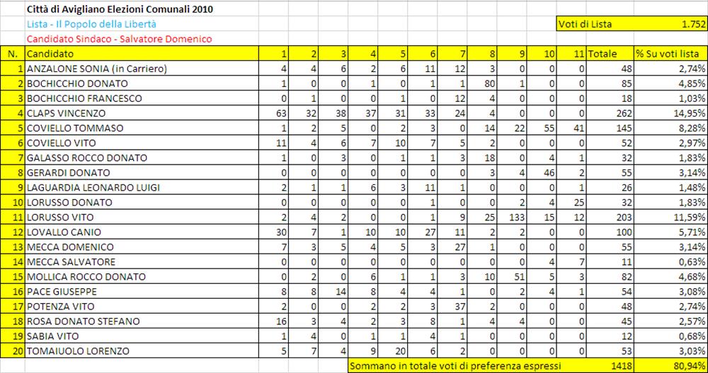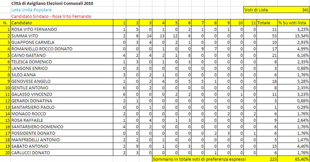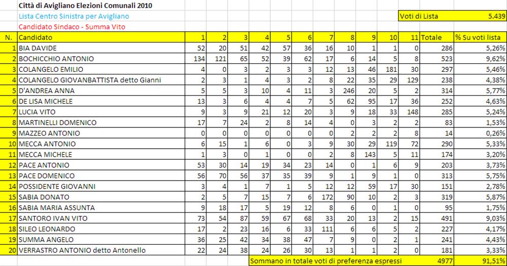 ELEZIONI COMUNALI AVIGLIANO 2010 - I RISULTATI |