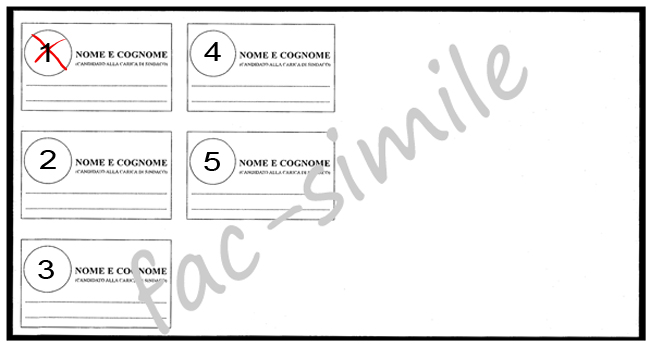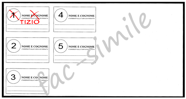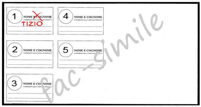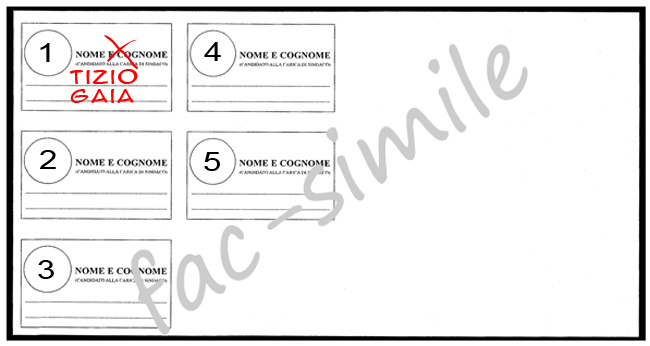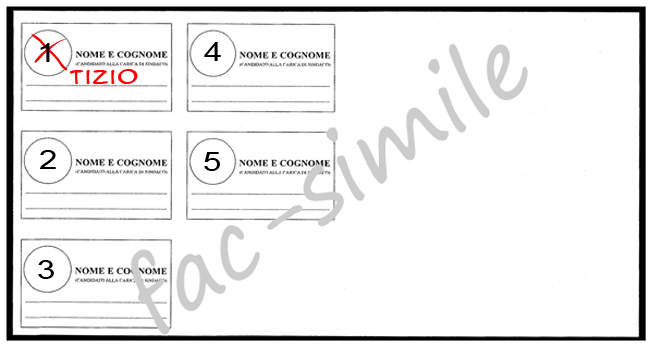 Esempio 2: TIZIO è candidato a consigliere della lista n. 1. Il voto va alla lista n.1, al candidato a Sindaco ad essa collegato ed a TIZIO.