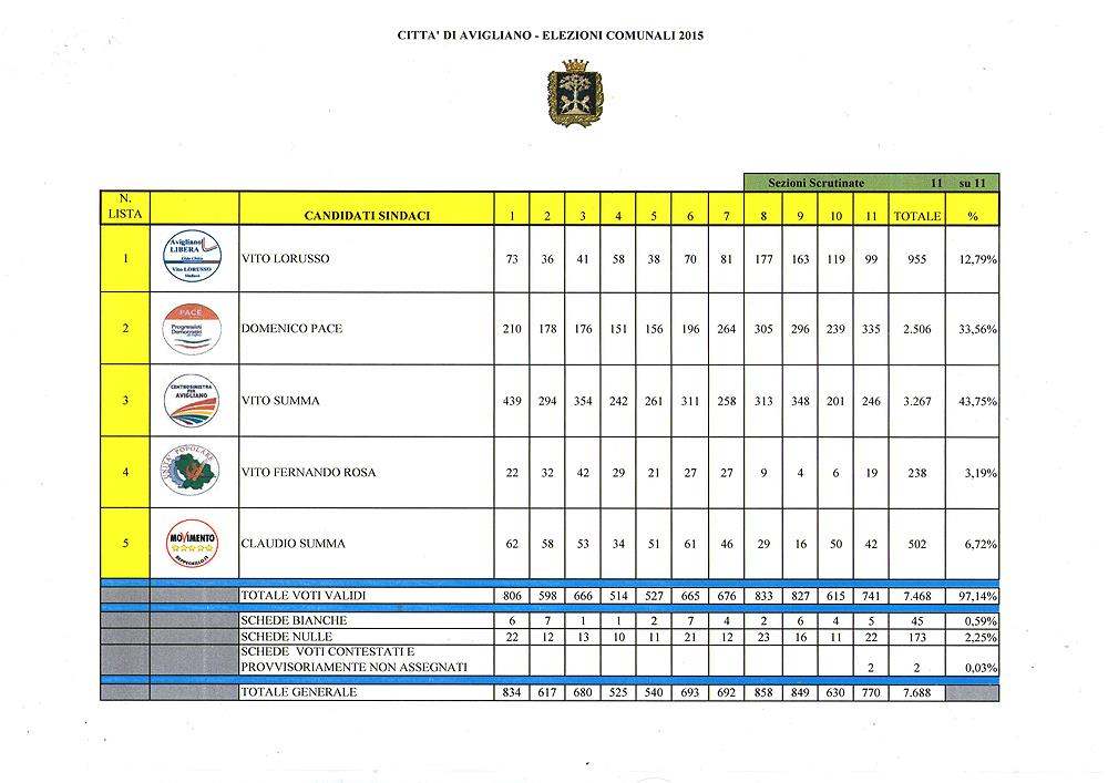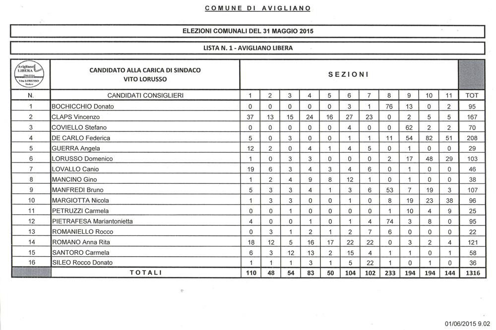 IL NUOVO SINDACO DI AVIGLIANO - TUTTI I RISULTATI |