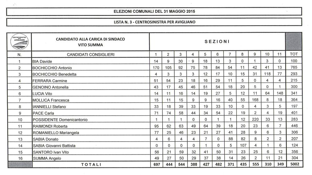 ELEZIONI COMUNALI AVIGLIANO 2015
