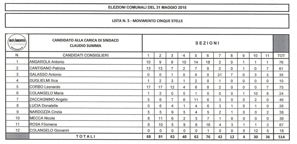 · Davide Bia · Antonio Bochicchio (ELETTO) · Benedetta Bochicchio (ELETTA) · Carmine Ferrara · Antonella Genoino (ELETTA) · Vito Lucia (ELETTO) · Francesca Mollica (ELETTA) · Stefano Iannelli · Carla Pace (ELETTA)