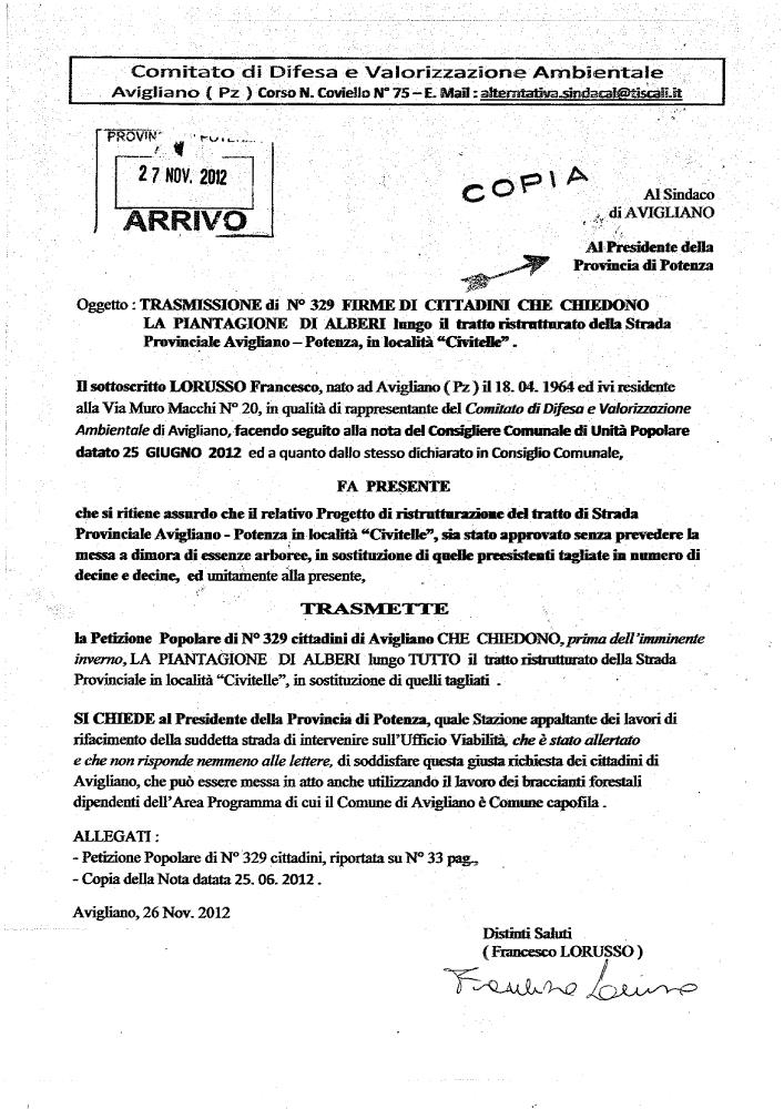 Dal 2012 è stato chiesto al Sindaco di far ripiantare gli alberi tagliati in località Civitelle . C’è stata una richiesta ( giugno 2012 ), una Petizione di oltre 300 cittadini e vari solleciti .